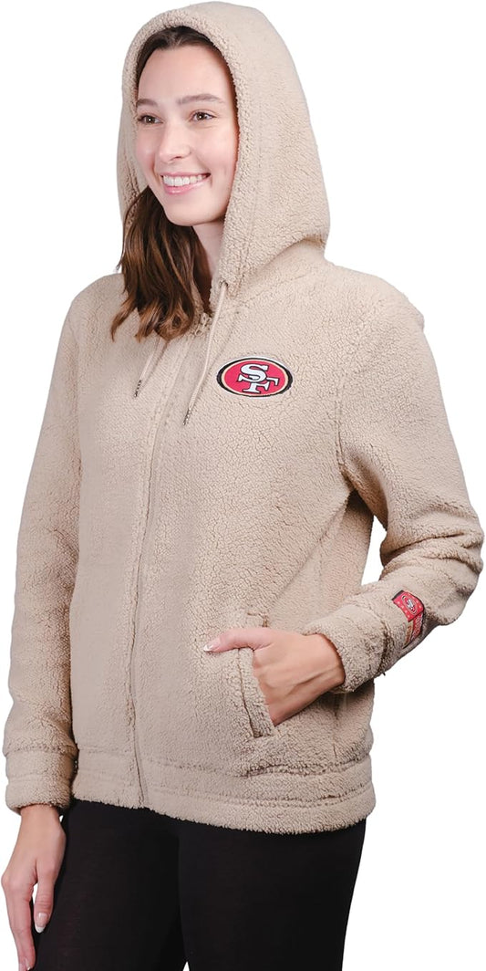 NFL Official Women's Super Soft Sherpa Full Zip Hoodie Sweatshirt Jacket|San Francisco 49ers