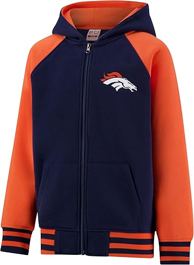 Ultra Game NFL Official Boy's Super Soft Full Zip Varsity Hoodie Sweatshirt, Denver Broncos, Team Color 2024|Denver Broncos