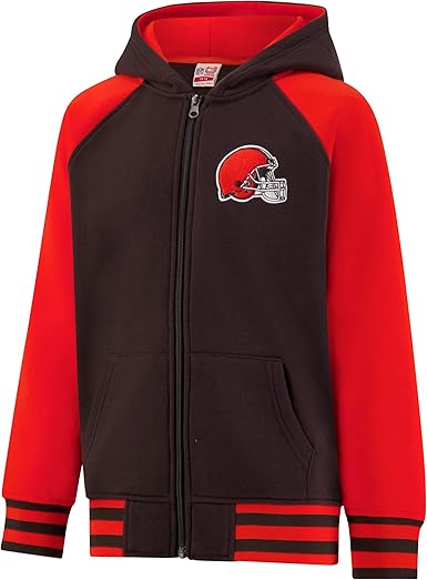 Ultra Game NFL Official Boy's Super Soft Full Zip Varsity Hoodie Sweatshirt, Cleveland Browns, Team Color 2024|Cleveland Browns