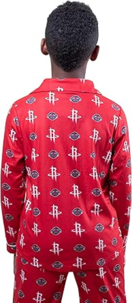 Ultra Game NBA Official Youth 2-Piece Super Soft Button Down Pajamas Set, Houston Rockets, Boys Sizes|Houston Rockets