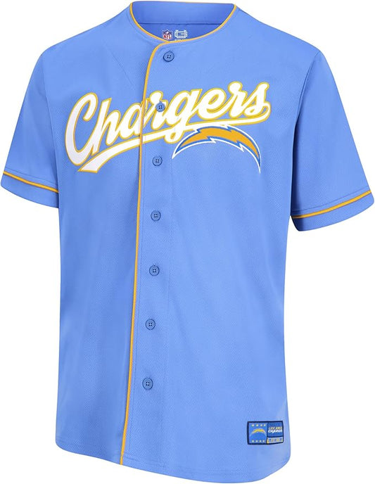 Ultra Game NFL Official Adults Game Day Button Down Baseball Mesh Jersey Shirt - Unisex, Los Angeles Chargers, Team Color|Los Angeles Chargers