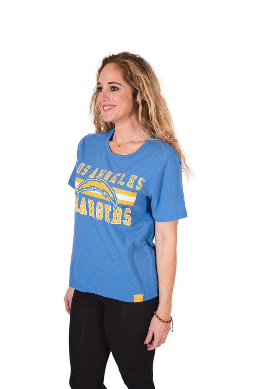 Ultra Game NFL Official Women's Distressed Graphics Super Soft Crew Neck T-Shirt, Los Angeles Chargers, Team Color|Los Angeles Chargers