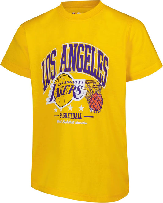 Ultra Game Youth's NBA Official Super Soft T-Shirt & Shorts 2-Piece Set, Los Angeles Lakers, Heather Charcoal|Los Angeles Lakers