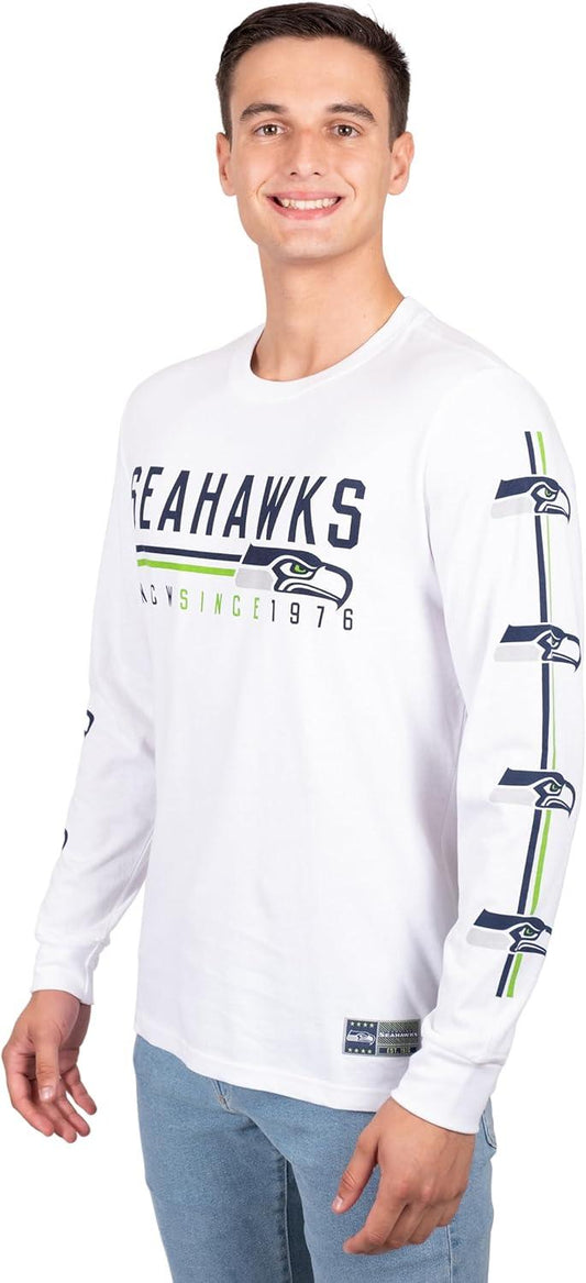 Ultra Game NFL Official Adults Super Soft Supreme Long Sleeve T-Shirt - Unisex, Seattle Seahawks, White|Seattle Seahawks