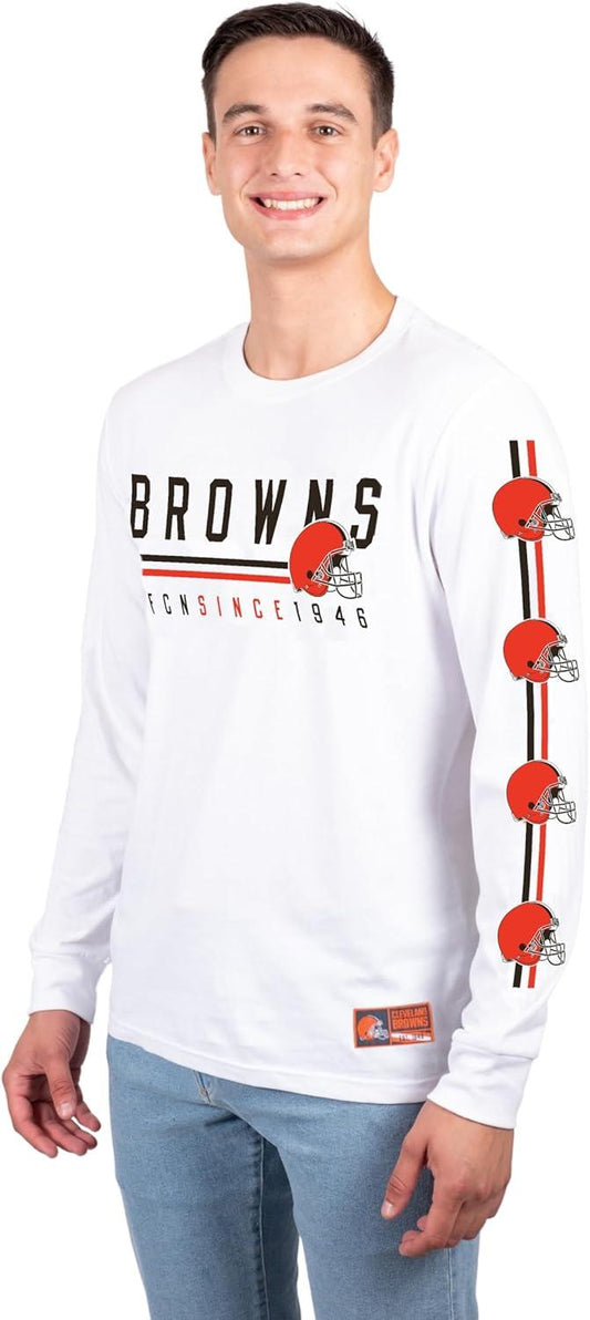 Ultra Game NFL Official Adults Super Soft Supreme Long Sleeve T-Shirt - Unisex, Cleveland Browns, White|Cleveland Browns