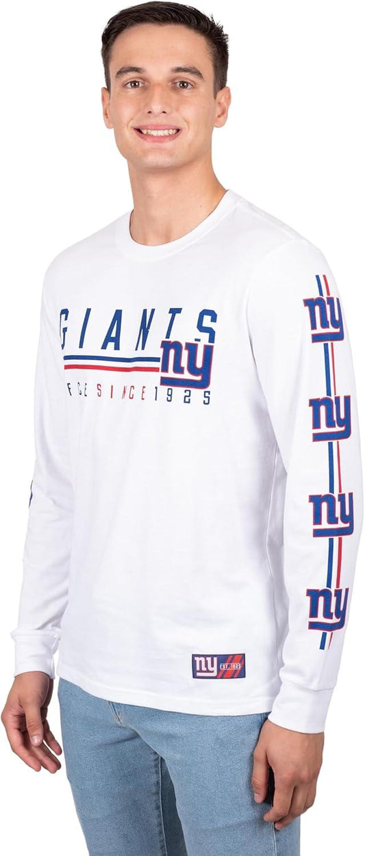 Ultra Game NFL Official Adults Super Soft Supreme Long Sleeve T-Shirt - Unisex, New York Giants, White|New York Giants