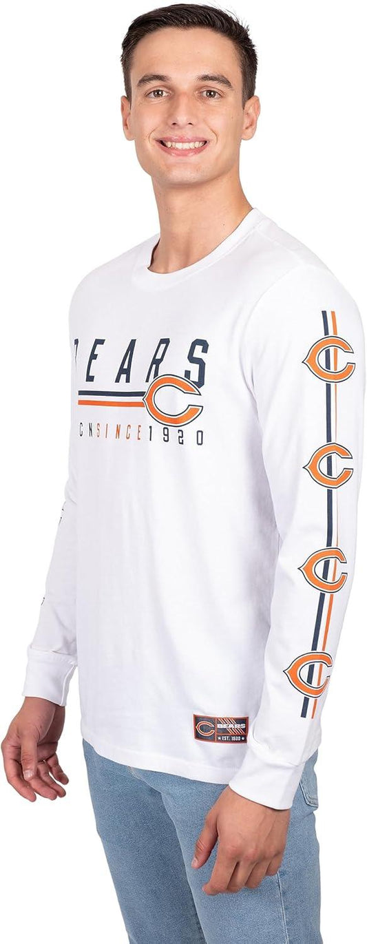 Ultra Game NFL Official Adults Super Soft Supreme Long Sleeve T-Shirt - Unisex, Chicago Bears, White|Chicago Bears