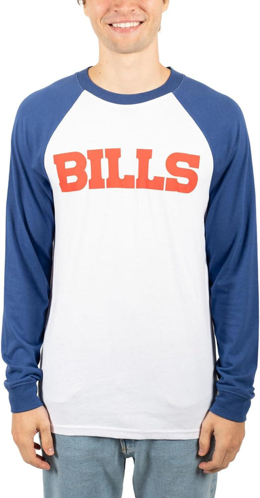 Ultra Game NFL Official Adults Super Soft Raglan Baseball Long Sleeve T-Shirt - Unisex, Buffalo Bills, White|Buffalo Bills