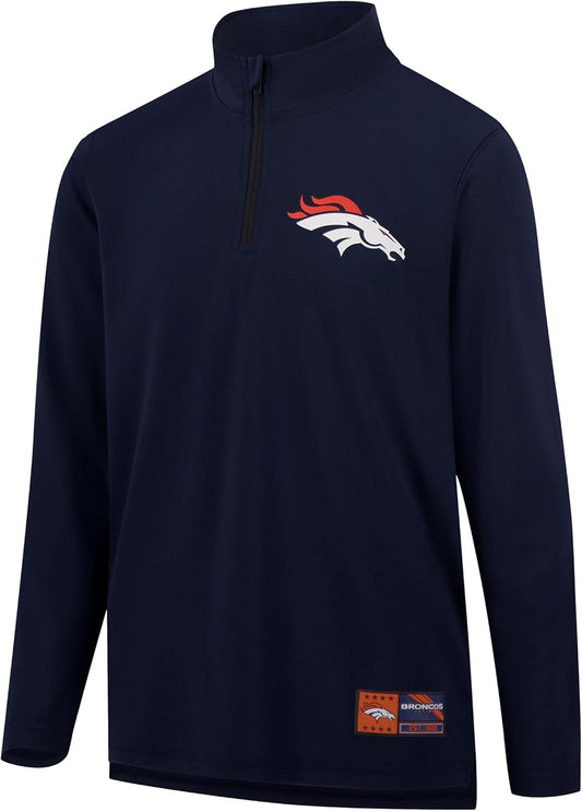 Ultra Game NFL Official Adults Super Soft Quarter Zip Long Sleeve T-Shirt - Unisex Denver Broncos|Denver Broncos