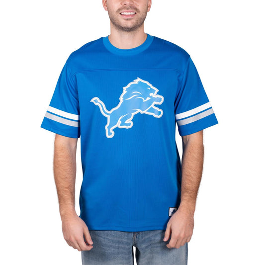 Ultra Game NFL Detroit Lions Mens Standard Jersey Crew Neck Mesh Stripe T-Shirt|Detroit Lions