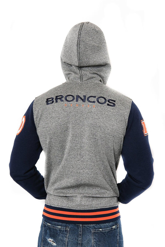 Ultra Game NFL Official Adults Super Soft Supreme Full Zip Varsity Hoodie Sweatshirt Jacket - Unisex, Denver Broncos, Heather Gray|Denver Broncos