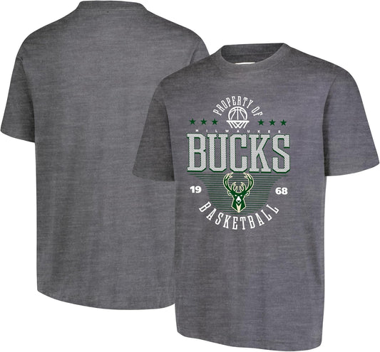 Ultra Game NBA Official Youth Super Soft Mad Props T-Shirt, Milwaukee Bucks, Heather Charcoal|Milwaukee Bucks