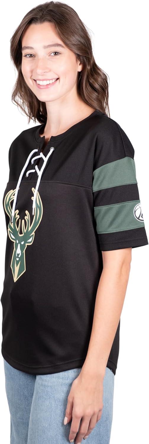 Ultra Game NBA Official Women's Super Soft Mesh Lace-up Jersey Shirt, Milwaukee Bucks, Black|Milwaukee Bucks