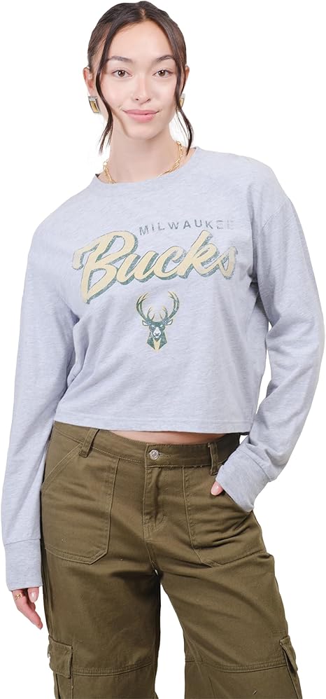 Ultra Game NBA Official Women's Super-Soft Crop Top Shirt, Milwaukee Bucks|Milwaukee Bucks