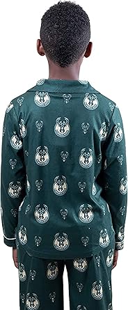 Ultra Game NBA Official Youth 2-Piece Super Soft Button Down Pajamas Set, Milwaukee Bucks, Boys Sizes|Milwaukee Bucks