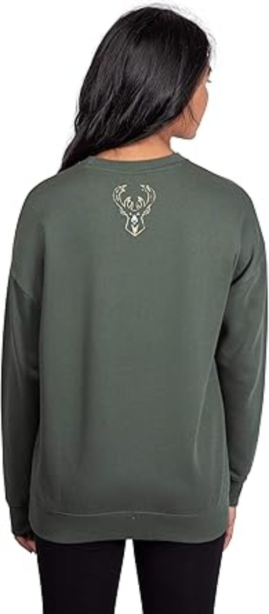 Ultra Game NBA Official Women's Extra Soft Fleece Distressed Oversized Pullover Sweatshirt, Milwaukee Bucks, Team Color|Milwaukee Bucks