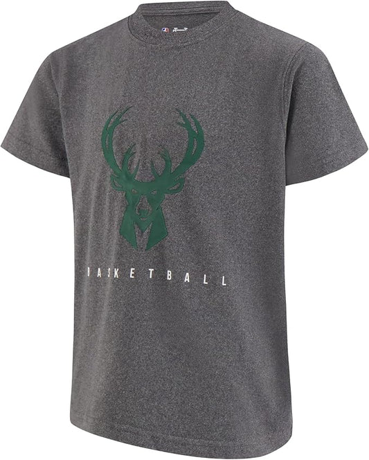 Ultra Game Youth's NBA Official Super Soft T-Shirt & Shorts 2-Piece Set, Milwaukee Bucks, Heather Charcoal|Milwaukee Bucks