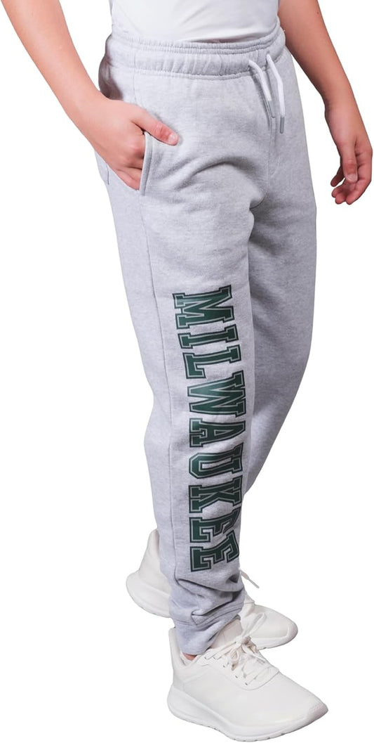 Ultra Game Youth's NBA Official Super Soft Game Day Jogger Sweatpants, Milwaukee Bucks, Heather Gray|Milwaukee Bucks