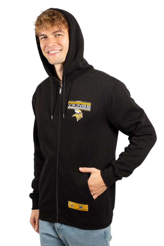 Ultra Game NFL Official Adults Super Soft Supreme Full Zip Hoodie Sweatshirt Jacket - Warm Polyester Blend - Unisex, Minnesota Vikings, Black|Minnesota Vikings