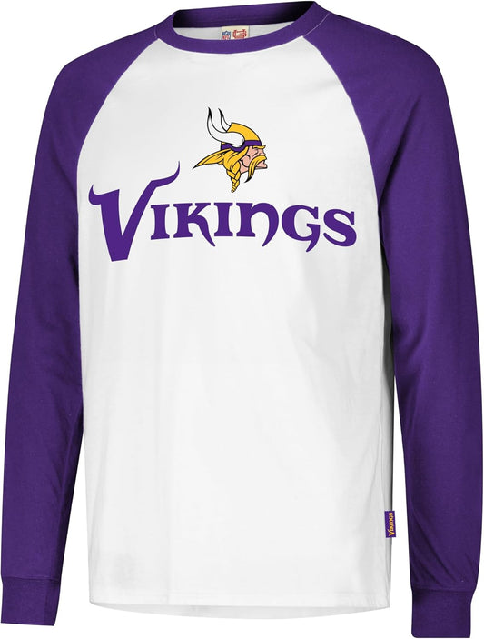 Ultra Game NFL Official Adults Super Soft Raglan Baseball Long Sleeve T-Shirt, Minnesota Vikings, White|Minnesota Vikings