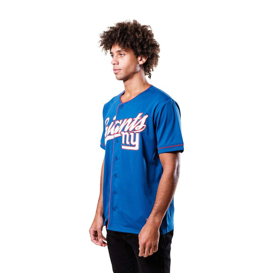 Ultra Game NFL Official Adults Game Day Button Down Baseball Mesh Jersey Shirt - Unisex, New York Giants, Team Color|New York Giants