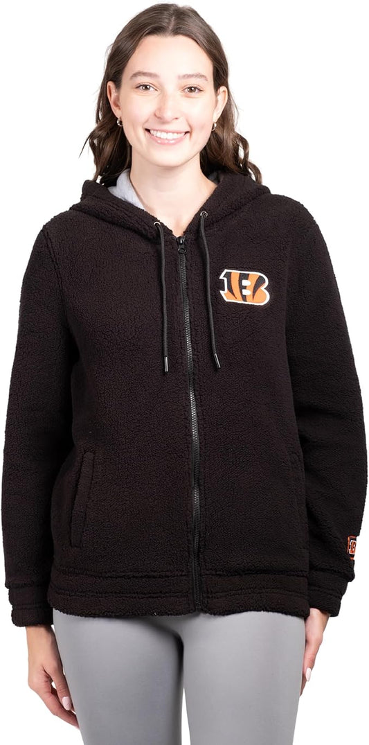 NFL Womens Full Zip Soft Sherpa Hoodie Sweatshirt Jacket|Cincinnati Bengals