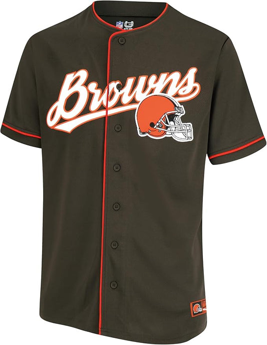 Ultra Game NFL Official Adults Game Day Button Down Baseball Mesh Jersey Shirt - Unisex, Cleveland Browns, Team Color|Cleveland Browns
