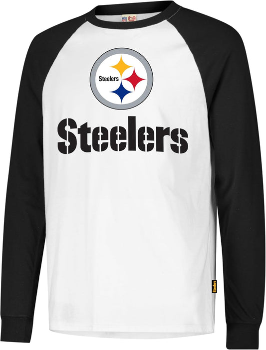 Ultra Game NFL Official Adults Super Soft Raglan Baseball Long Sleeve T-Shirt, Pittsburgh Steelers, White|Pittsburgh Steelers