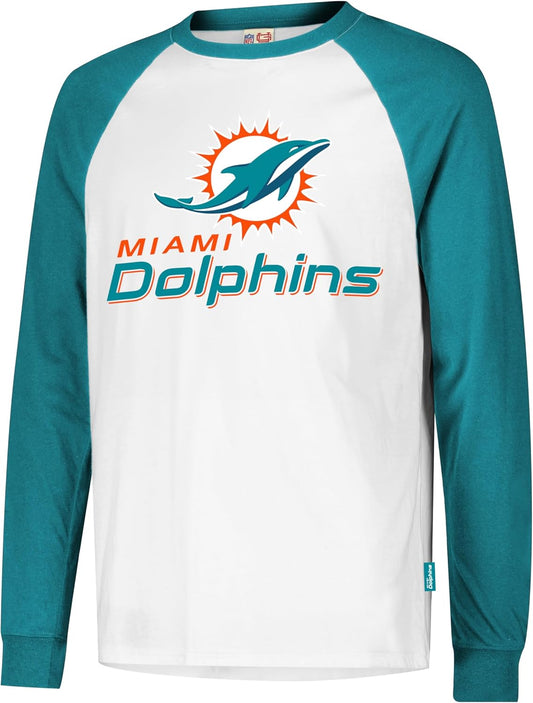Ultra Game NFL Official Adults Super Soft Raglan Baseball Long Sleeve T-Shirt, Miami Dolphins, White|Miami Dolphins