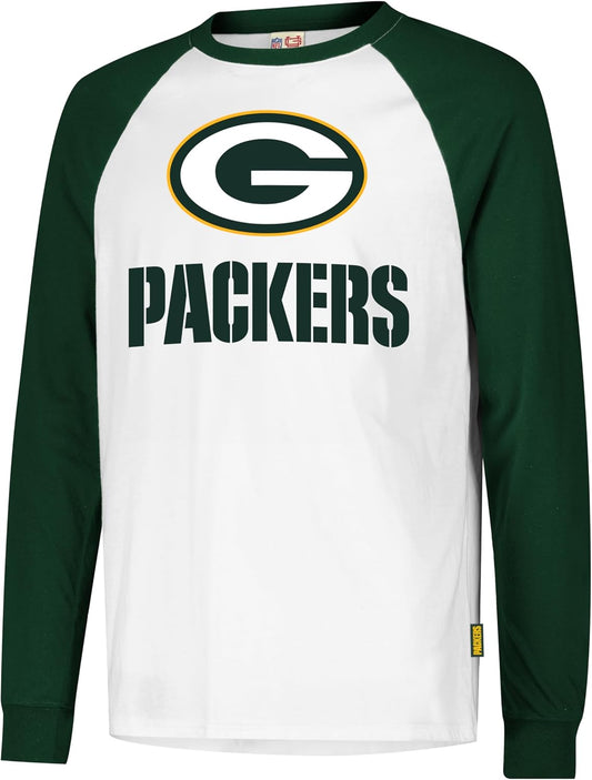 Ultra Game NFL Official Adults Super Soft Raglan Baseball Long Sleeve T-Shirt, Green Bay Packers, White|Green Bay Packers