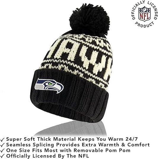 Ultra Game NFL Official Adults Super Soft Cable Knit Winter Beanie Knit Hat with Extra Warm Touch Screen Gloves, Seattle Seahawks, One Size|Seattle Seahawks