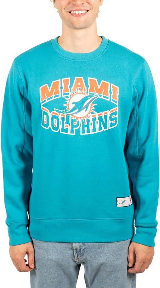 Ultra Game NFL Official Adults Super Soft Ultimate Crew Neck Sweatshirt - Unisex, Miami Dolphins, Team Color|Miami Dolphins