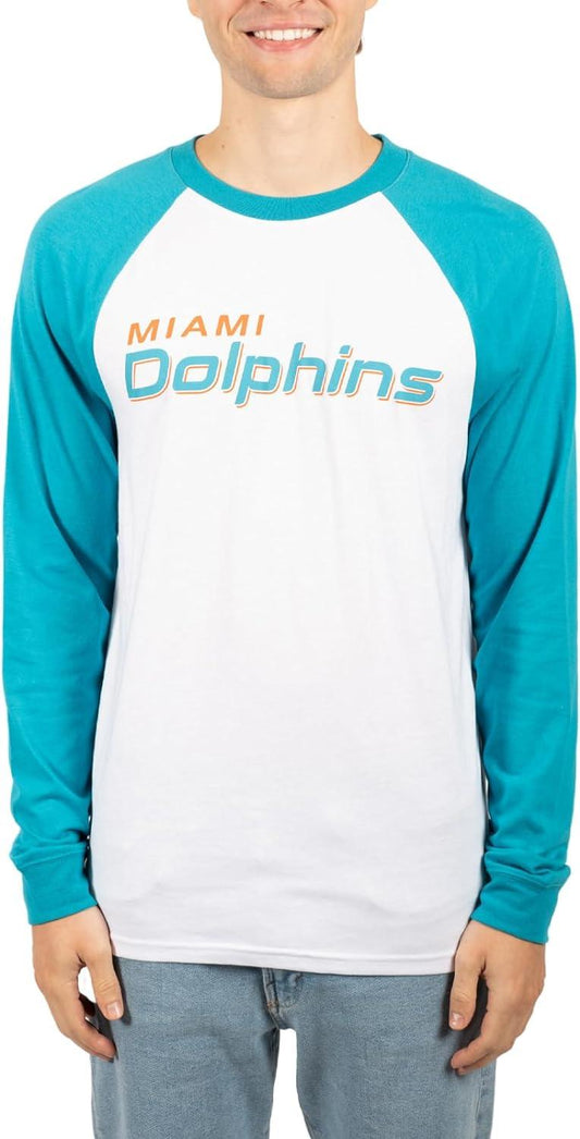 Ultra Game NFL Official Adults Super Soft Raglan Baseball Long Sleeve T-Shirt - Unisex, Miami Dolphins, White| Miami Dolphins