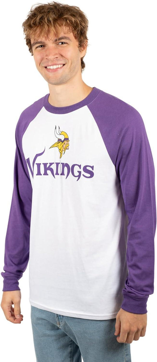 Ultra Game NFL Official Adults Super Soft Raglan Baseball Long Sleeve T-Shirt - Unisex, Minnesota Vikings, White| Minnesota Vikings