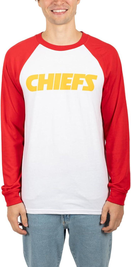 Ultra Game NFL Official Adults Super Soft Raglan Baseball Long Sleeve T-Shirt - Unisex, Kansas City Chiefs, White|Kansas City Chiefs