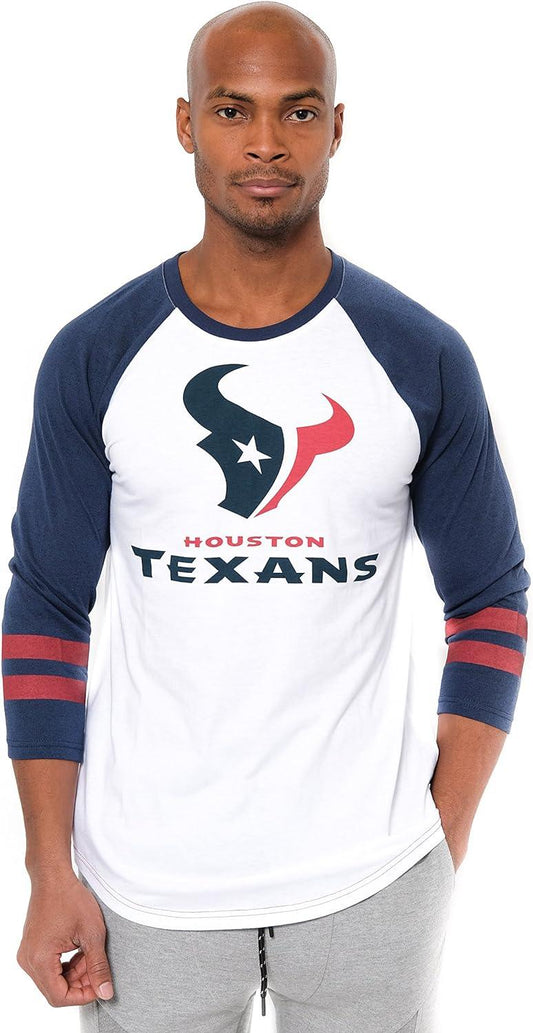 UUltra Game NFL Official Adults Super Soft Raglan Baseball Long Sleeve T-Shirt - Unisex, Houston Texans, White Updated| Houston Texans
