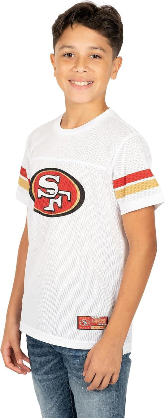 Ultra Game NFL Official Youth Super Soft Game Day Mesh Jersey Shirt, San Francisco 49ers, White|San Francisco 49ers