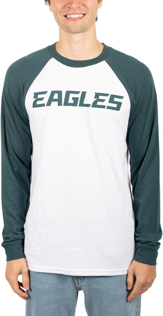 Ultra Game NFL Official Adults Super Soft Raglan Baseball Long Sleeve T-Shirt - Unisex, Philadelphia Eagles, White| Philadelphia Eagles