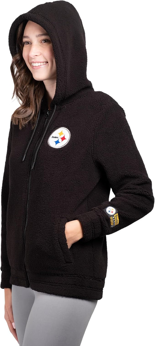 NFL Official Women's Full Zip Soft Sherpa Hoodie Sweatshirt Jacket|Pittsburgh Steelers