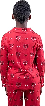 Ultra Game NBA Official Youth 2-Piece Super Soft Button Down Pajamas Set, Chicago Bulls, Boys Sizes|Chicago Bulls