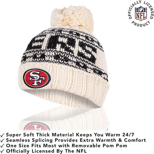 NFL Official Adults Super Soft Cable Knit Winter Beanie Knit Hat with Extra Warm Touch Screen Gloves|San Francisco 49ers