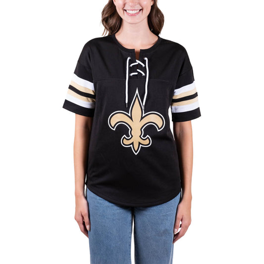 Ultra Game NFL New Orleans Saints Womens Standard Lace Up Tee Shirt Penalty Box|New Orleans Saints
