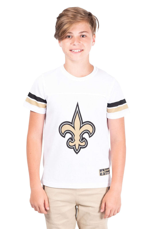 Ultra Game NFL Official Youth Super Soft Game Day Mesh Jersey Shirt, New Orleans Saints, White|New Orleans Saints