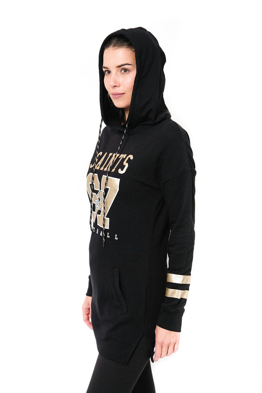 Ultra Game NFL New Orleans Saints Womens Soft French Terry Tunic Hoodie Pullover Sweatshirt|New Orleans Saints