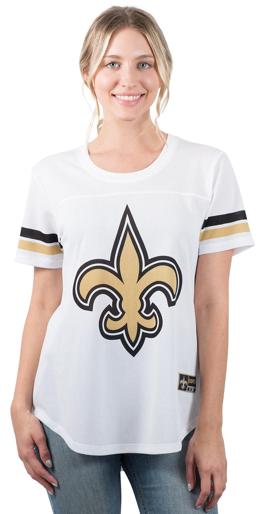 Ultra Game NFL Official Women's Super Soft Mesh Jersey T-Shirt, New Orleans Saints, White|New Orleans Saints