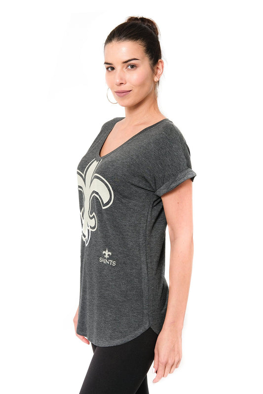 Ultra Game NFL New Orleans Saints Womens Soft Mesh Jersey Varsity Tee Shirt|New Orleans Saints