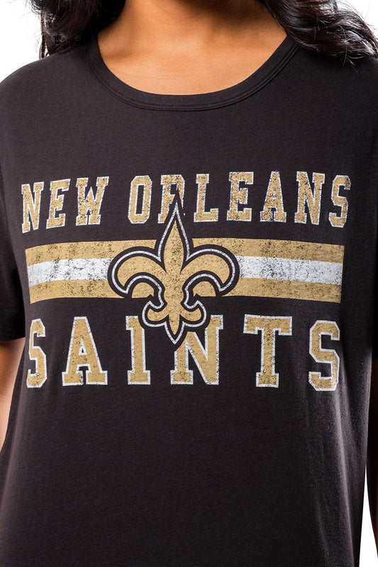 Ultra Game NFL Official Women's Distressed Graphics Super Soft Crew Neck T-Shirt, New Orleans Saints, Team Color|New Orleans Saints