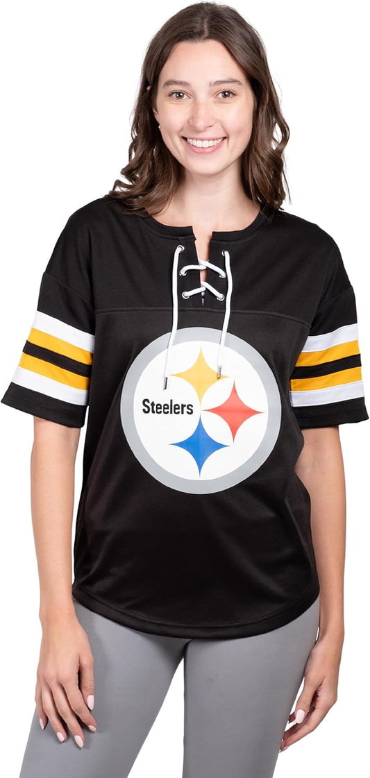 NFL Official Women's Super Soft Mesh Jersey T-Shirt|Pittsburgh Steelers