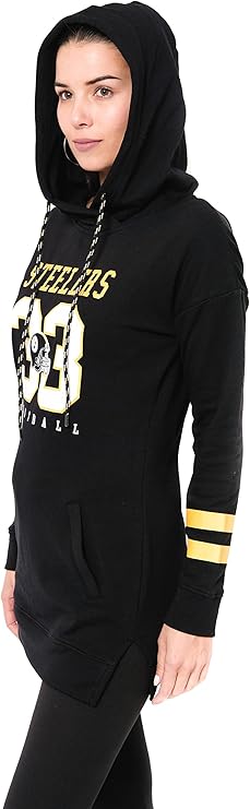 NFL Womens Soft French Terry Tunic Hoodie Pullover Sweatshirt|Pittsburgh Steelers