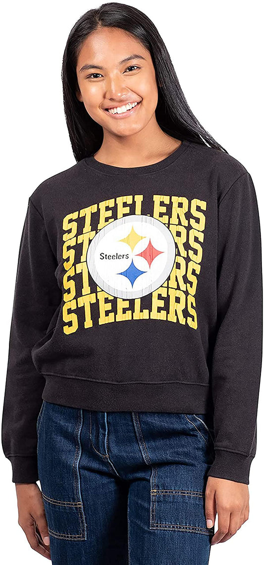 Ultra Game NFL Official Women's Super Soft Ultimate Crew Neck Sweatshirt, Pittsburgh Steelers, Team Color|Pittsburgh Steelers